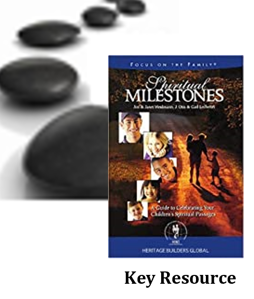 Milestones are events, preceded by a period of instruction from parents, which celebrate a spiritual development point in a child’s life. Milestones can establish spiritual markers while fostering the parent child relationship and encouraging your children’s spiritual growth process. Milestones support the concept found in Deut 6:8: “Tie them as symbols on your hands and bind them on your foreheads. Write them on the doorframes of your houses and on your gates.” Milestones help children mature by bringing understanding and application of God’s Word into their spiritual development. Heritage Builders provides a strategic plan for the spiritual training of children through seven key opportunities to pass the faith.